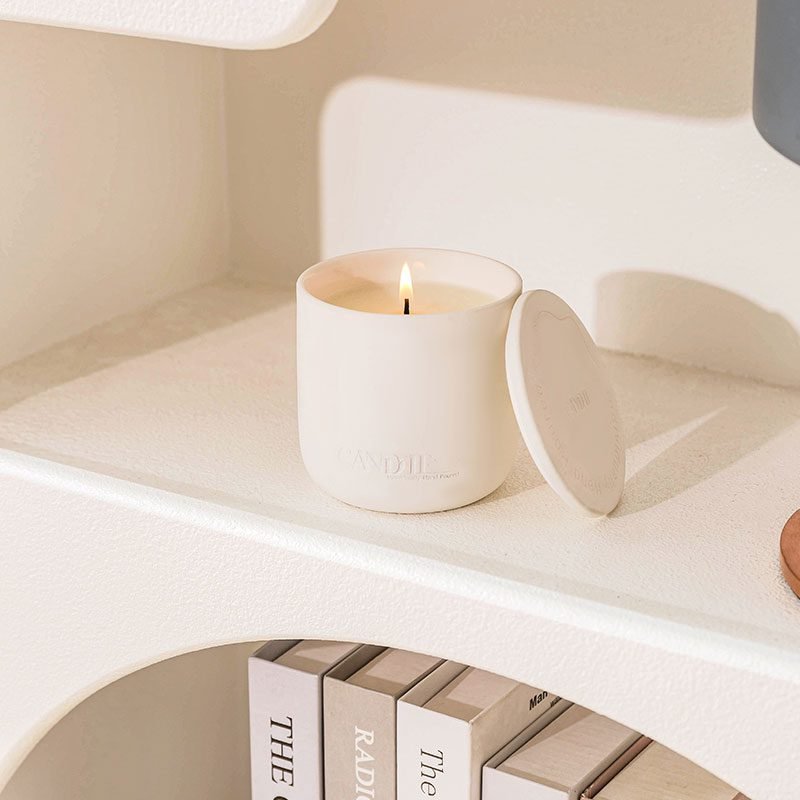This candle is hand-poured into a smooth, matte white ceramic jar with a matching lid, blending harmoniously into any modern interior. Its minimalist aesthetic and refined scent profile make it the perfect accessory for bedrooms, bathrooms, workspaces, or gift sets.